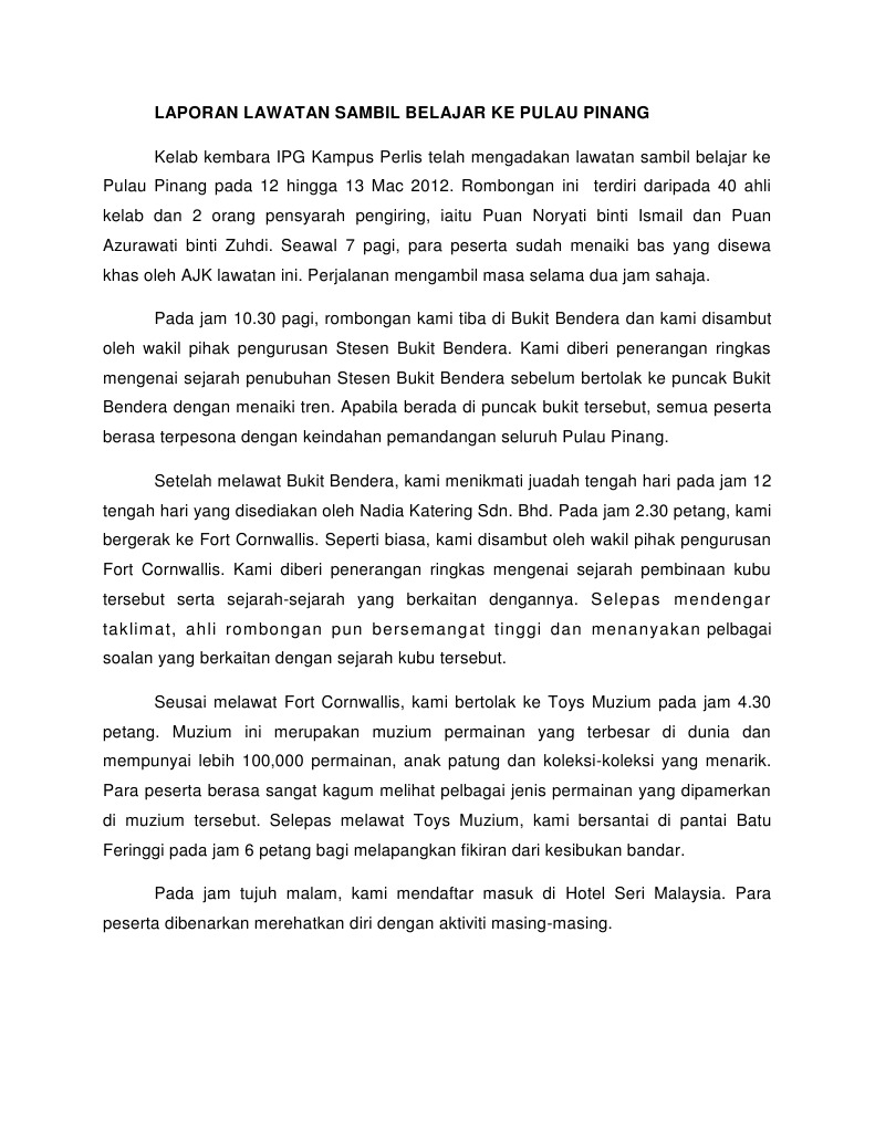 Laporan Lawatan Sambil Belajar Ke Pulau Pinang Pdf